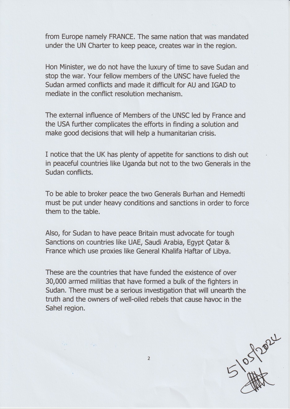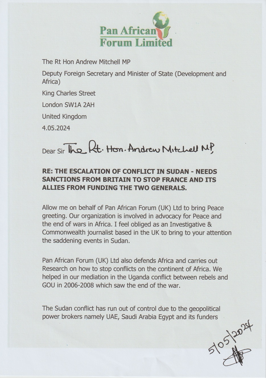 0305THE ESCALATION OF CONFLICT IN SUDAN - NEEDS SANCTIONS FROM BRITAIN TO STOP FRANCE AND ITS ALLIES FROM FUNDING THE TWO GENERALS